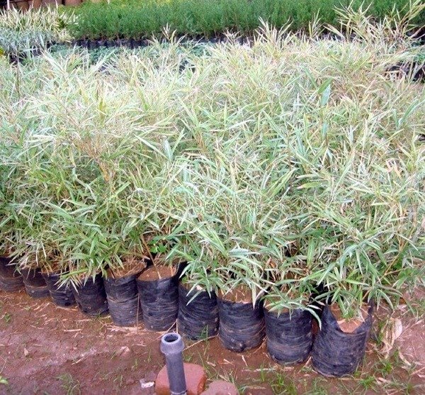 & Free ShippingVibrant bamboo plants in black nursery pots, tied for support, ideal for outdoor gardening and landscaping.