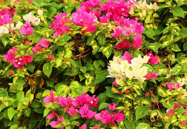 Revel in the captivating display of this lush bougainvillea plant, adorned with a harmonious mix of vibrant pink and white bracts set against a backdrop of healthy green foliage. The dense clusters of flowers create an enchanting blend of colors, making this plant a perfect centerpiece for gardens, patios, or balconies. Ideal for tropical and urban landscapes, it thrives in sunny environments and requires minimal care, making it an excellent choice for gardening enthusiasts and decorators. Its graceful growth and radiant blooms add both charm and vitality to any outdoor setting.