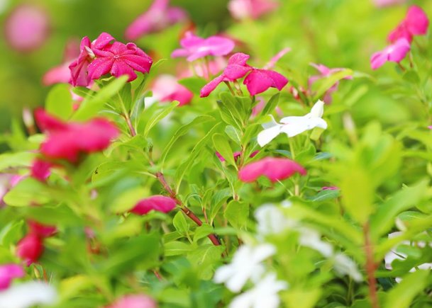 Elevate your garden or outdoor space with this mesmerizing mix of flowers in vivid pink, red, and white hues. These blossoms, surrounded by lush green foliage, create a captivating and harmonious natural display. Their dynamic arrangement reflects the effortless beauty of nature while serving as an ideal focal point for landscapes, flower beds, or patios. The contrasting vibrant colors and delicate petals bring life and energy to any setting, offering a serene yet striking visual experience. Perfect for nature enthusiasts and gardeners, this floral arrangement embodies the timeless charm of a blooming paradise.