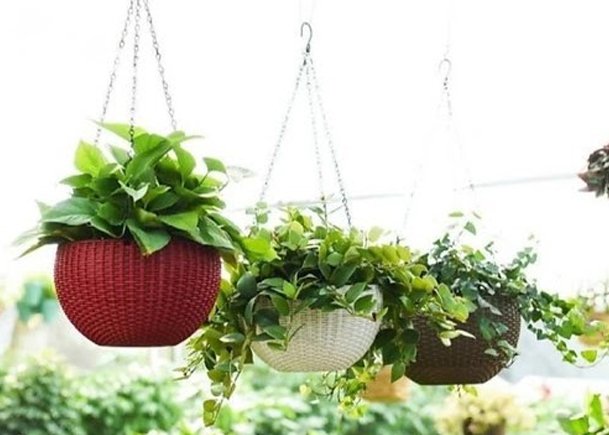 Elevate your outdoor decor with this set of three hanging plant baskets, each showcasing its unique design. The baskets come in three distinct colors: red, white, and brown, creating a harmonious balance of contrast and texture. Each basket hosts lush green plants with varied foliage types that add depth and natural beauty to the arrangement. Suspended by sturdy chains, these baskets blend functionality with charm, making them ideal for gardens, patios, or balconies. Their vibrant and healthy greenery complements any setting, enhancing the ambiance with a touch of nature. Perfect for gardening enthusiasts, this set offers effortless maintenance and versatile placement options.